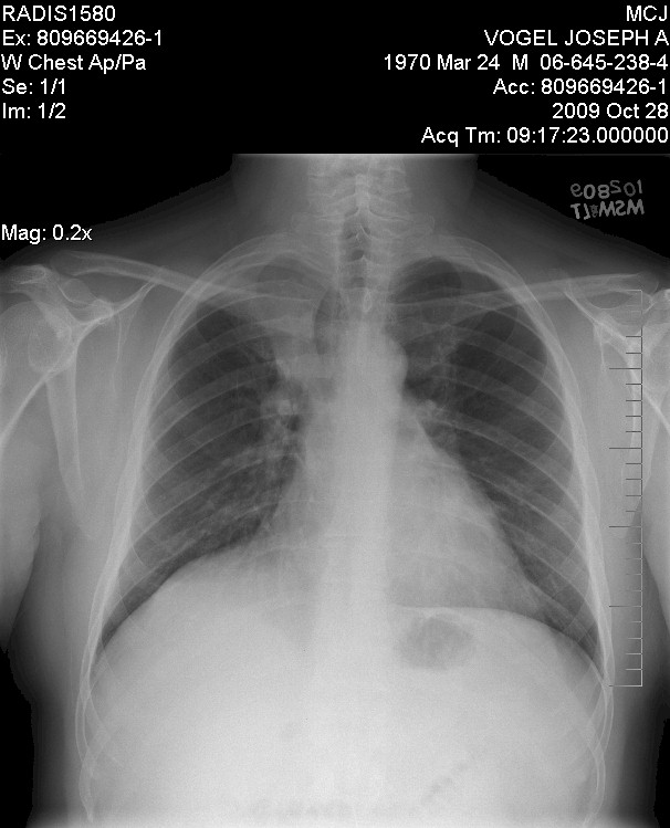 X-ray came back as “normal lung” (see examples at the bottom of this page). I indicated that it felt like I was gargling